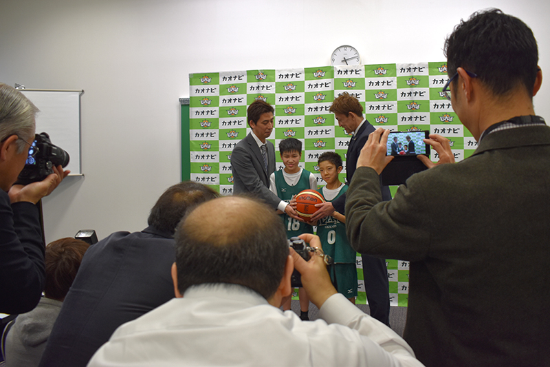 会見場所はレバンガ北海道のホームである「北海きたえーる(北海道立総合体育センター)」。