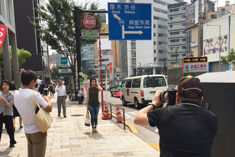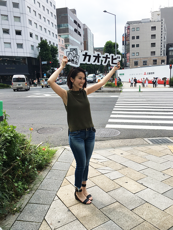 南青山三丁目の交差点で「じゃあ、カオナビロゴをラウンドガールのように笑顔で掲げましょう!」という指示が。これには広報の私もビックリ(笑)