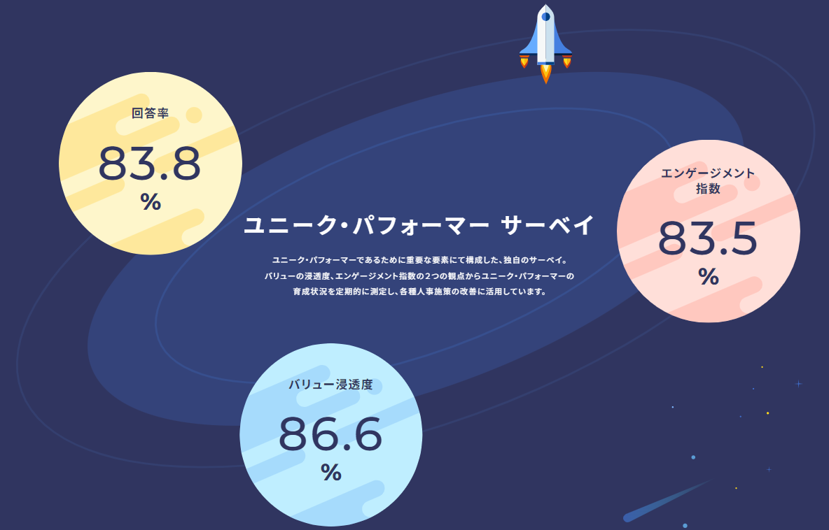 今回、ユニークパフォーマーサーベイというものを独自に設計し実施しました。やはりユニークパフォーマーの育成が人材戦略の要でもあるので、今後もサーベイを基軸にしながら施策の改善に取り組みたいと考えています。