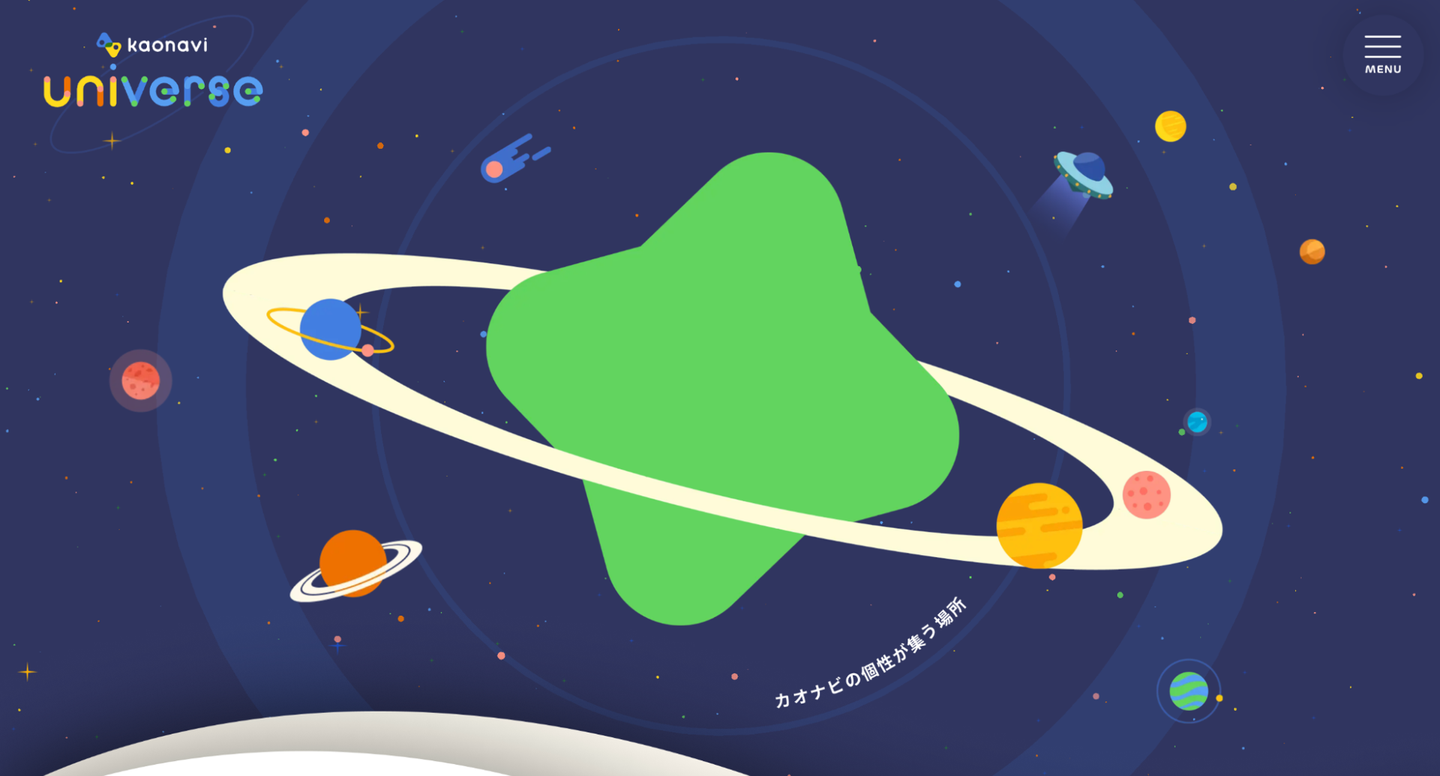 「kaonavi universe」は、無限の可能性を秘めた宇宙(universe)をイメージし「人の個性には無限の可能性があること」を表現したサイトです。デザインを担当する部署と案を出す中で挙がったキーワードの一つが「universe」でした。