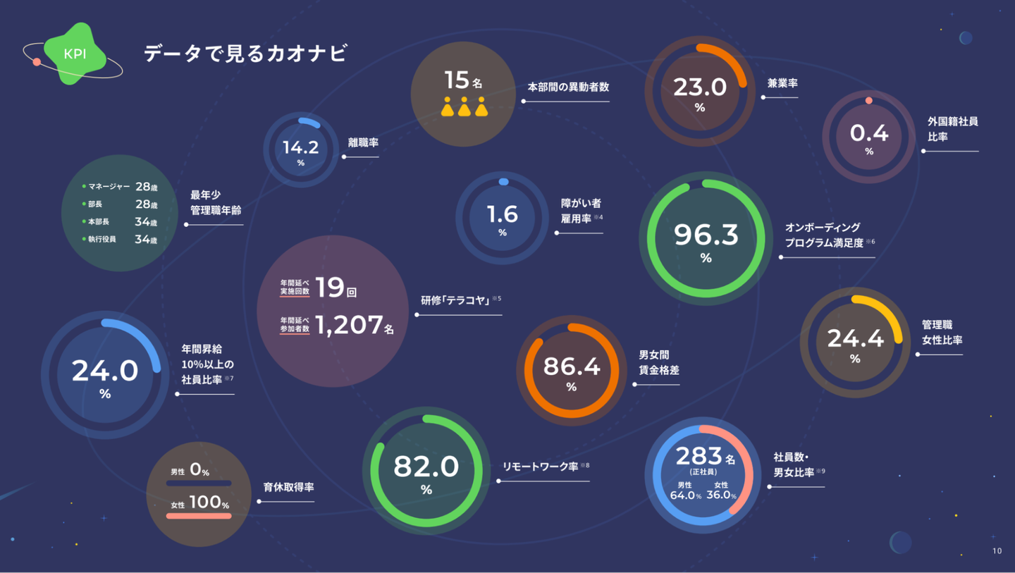 独自の指標に関しては特に議論を重ねました。カオナビは年齢や入社年数を問わず、能力に応じて成果を上げられる方を重要ポストに抜擢しています。この進捗を表す指標として当初「管理職の平均年齢」を想定していましたが、平均では端的に表現できず、結果的に「最年少管理職年齢(歳)」を公開するなど、カオナビらしい開示になったと思います。