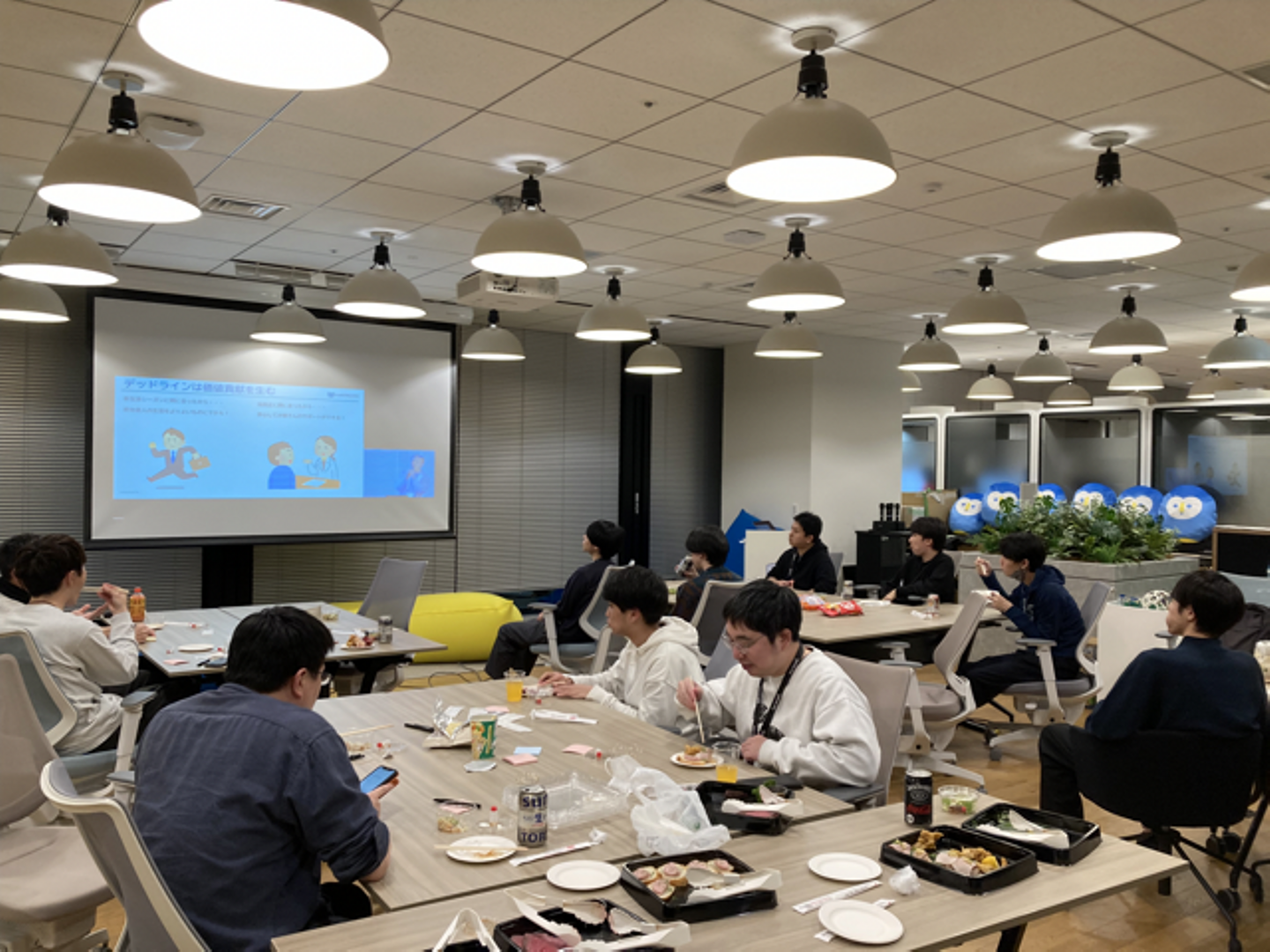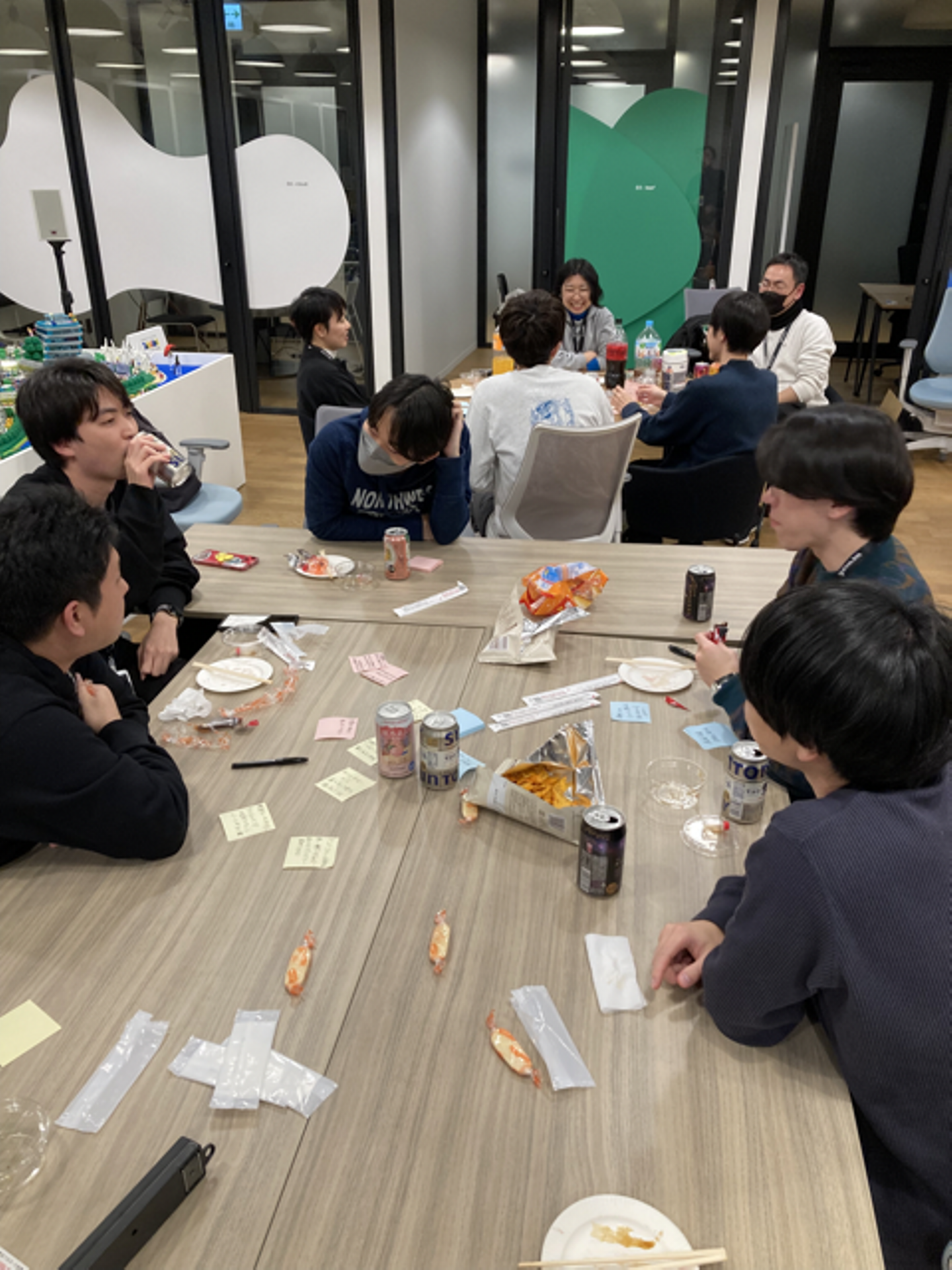 上映会に参加したメンバーは上映中に気になったことを付箋にメモをして、それをもとに感想会をしていました。普段別のチームで働くメンバーとスクラムや開発について話すことができ、とても楽しい時間になりました。