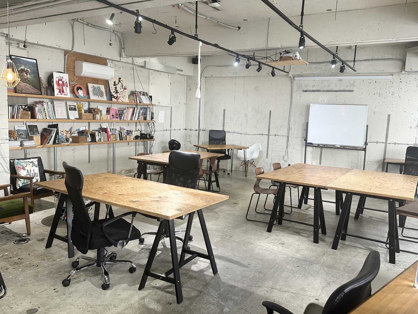 ※席は約20席ほど。ホワイトボードや会議できるような大机もあります