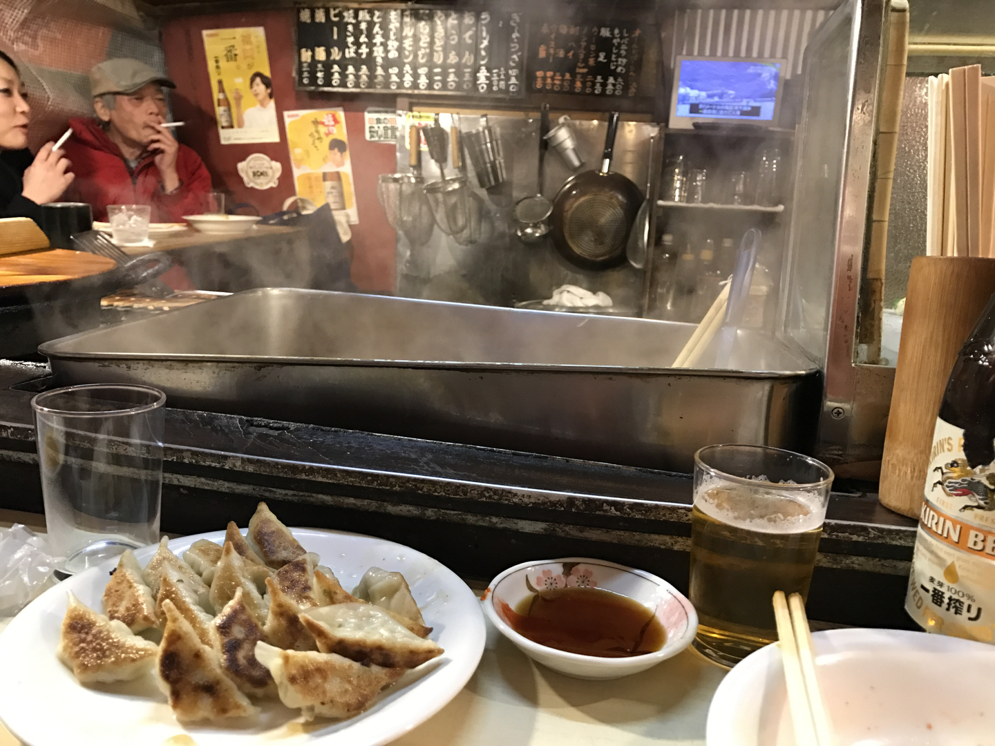 天神の屋台 餃子とビール最高!(Quán vỉa hè ở Tenjin Gyoza và bia là sự kết hợp tuyệt vời !)