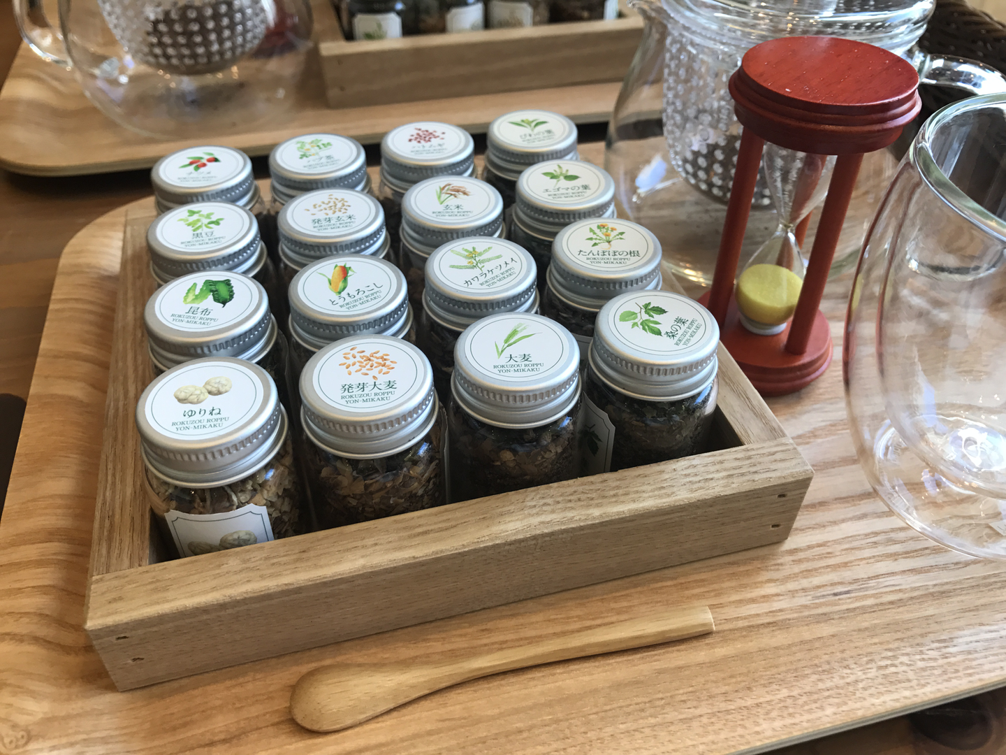 おしゃれなカフェで十六茶のマイブレンド体験 (Tự thử pha trà ở một quán cà phê)