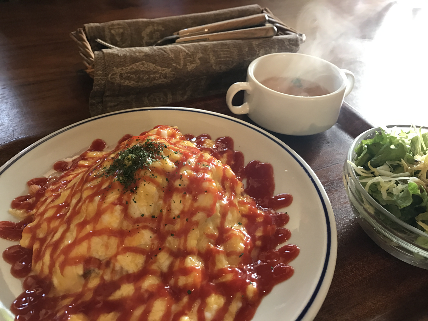 オムライスって食べると幸せな気持ちになる食べ物だとよく言われている (Nghe nói ăn omurice vào sẽ cảm thấy rất hạnh phúc)