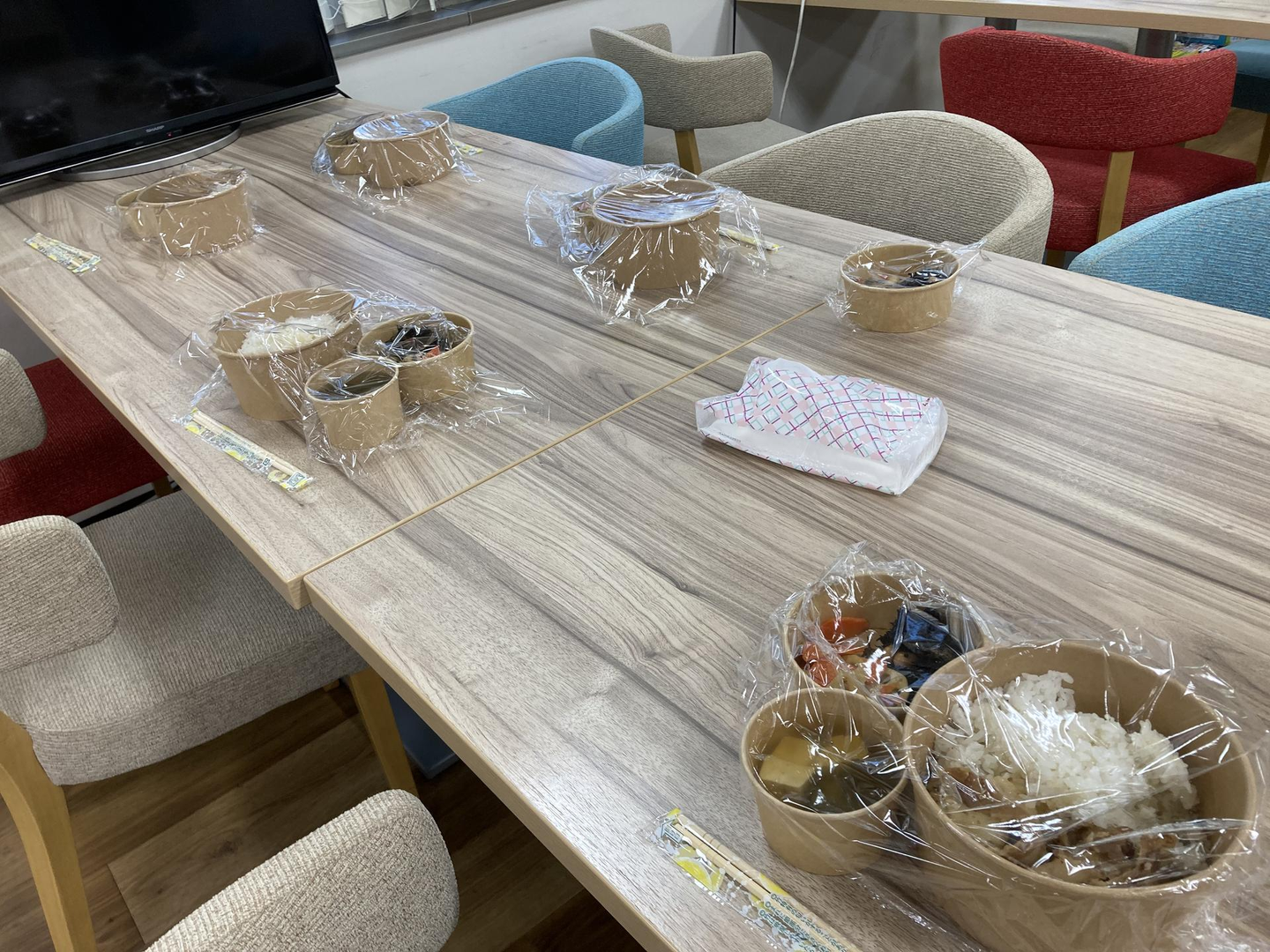 - ケータリング形式でお味噌汁や副菜もついてくる