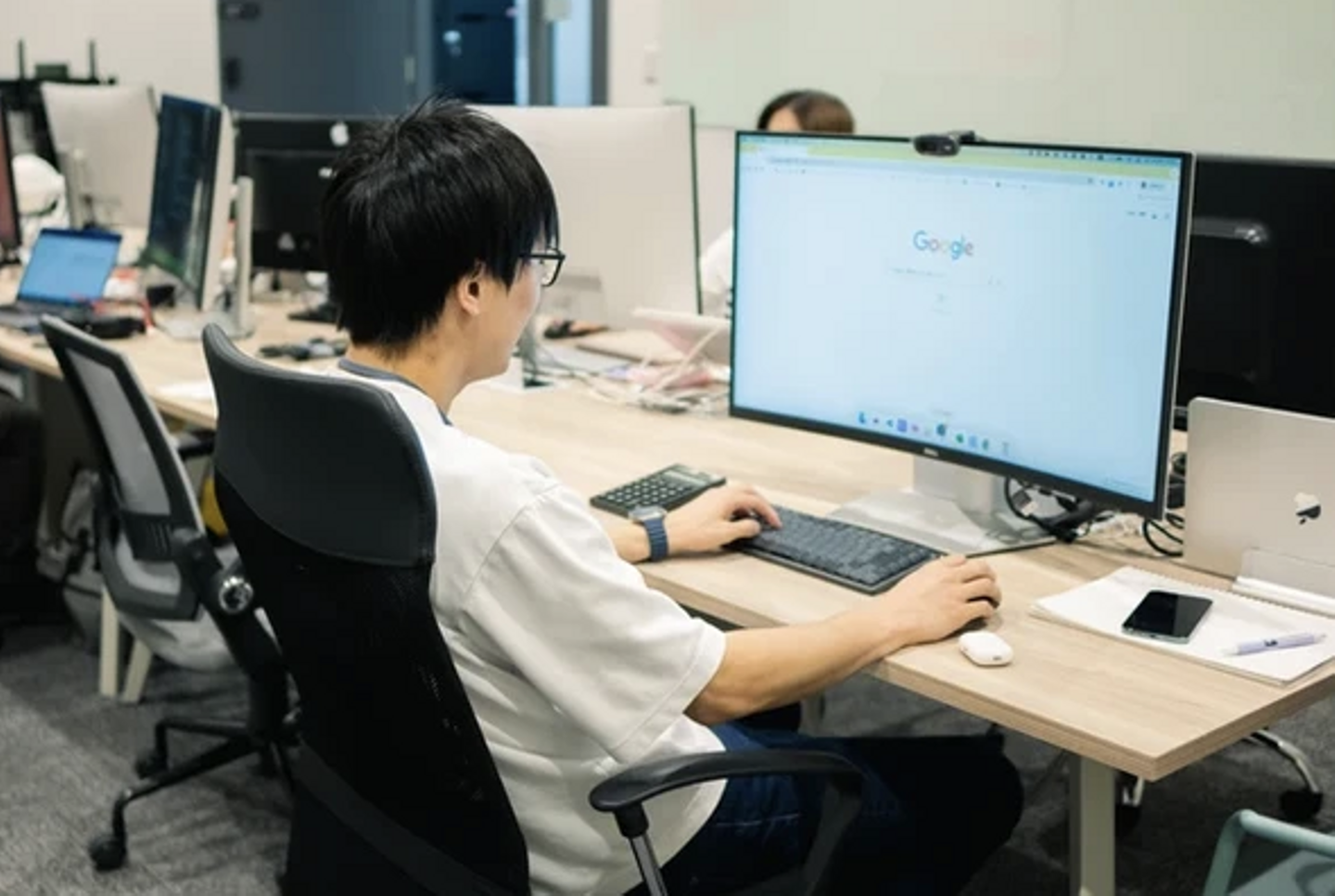 福岡本社を中心に、北九州オフィスや宮崎の拠点でも実施しているこのオフィス見学では、実際に働く先輩社員が業務を行う現場を間近で見られます。