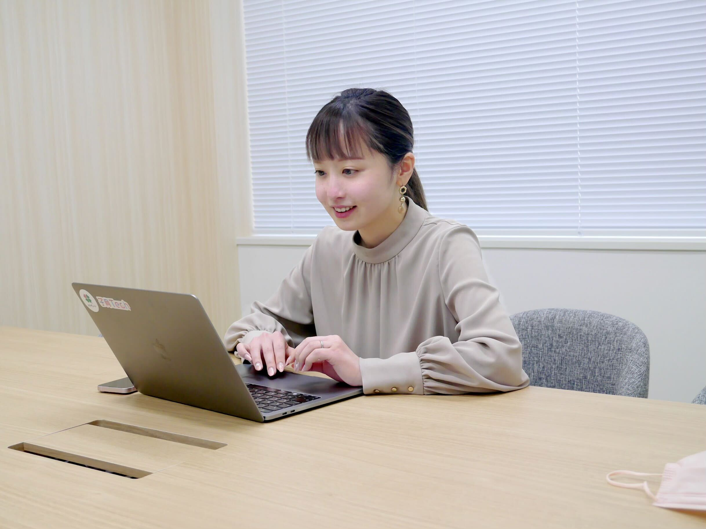 2020年に5月に入社した河合ですが、コロナ禍ということもあり入社初日からリモートワーク。難しい環境下でもマーケティング職として活躍します。