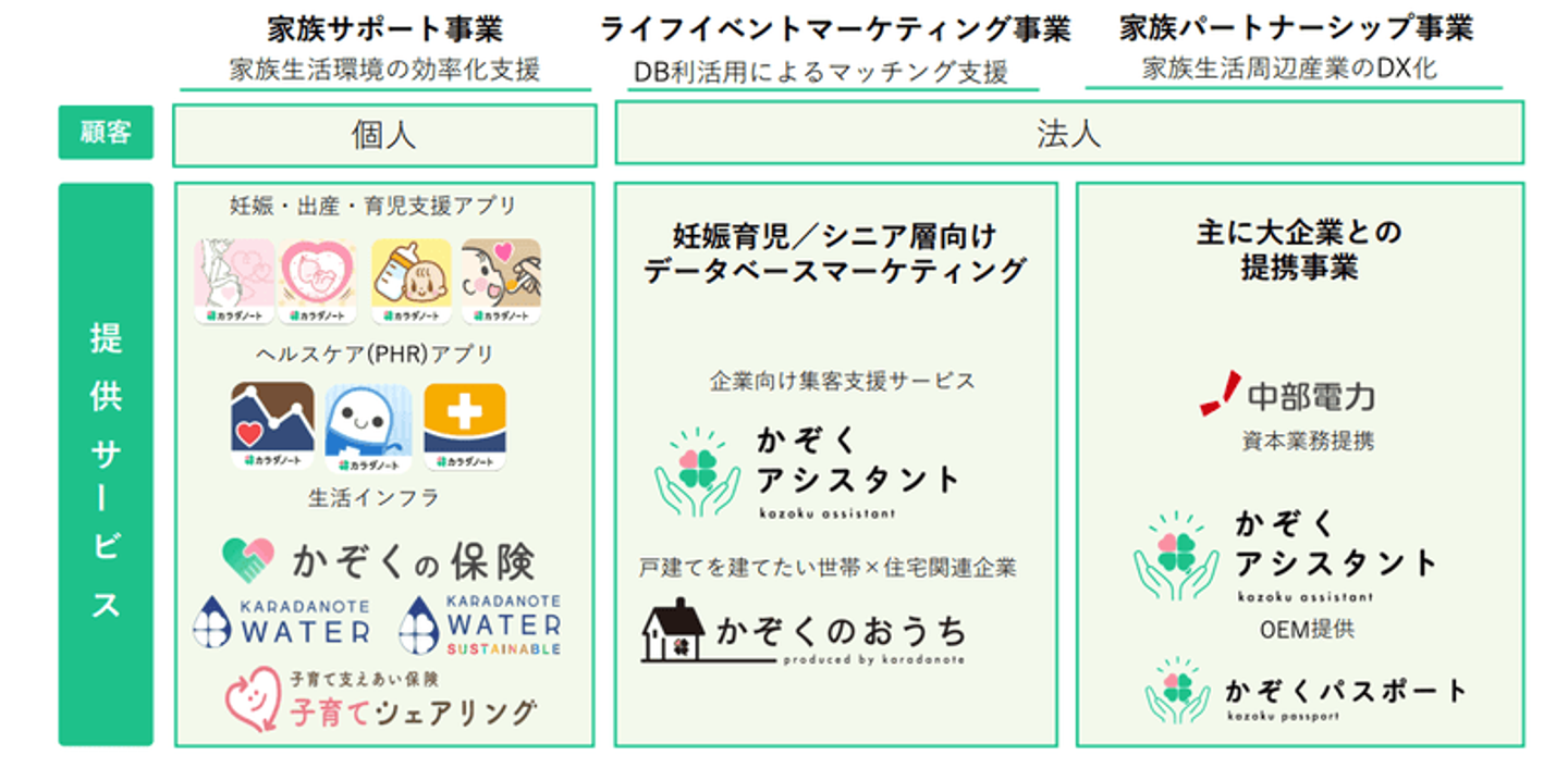 佐藤:家族パートナーシップは、ほか2つの事業とは異なり、ビジネスのノウハウを活かしながら、toCの顧客基盤がたくさんあるような企業様と、少子化や子育て環境の改善に繋がる取り組みを支援したいと思っています。直近の事例でいえば中部電力様との取り組みです。