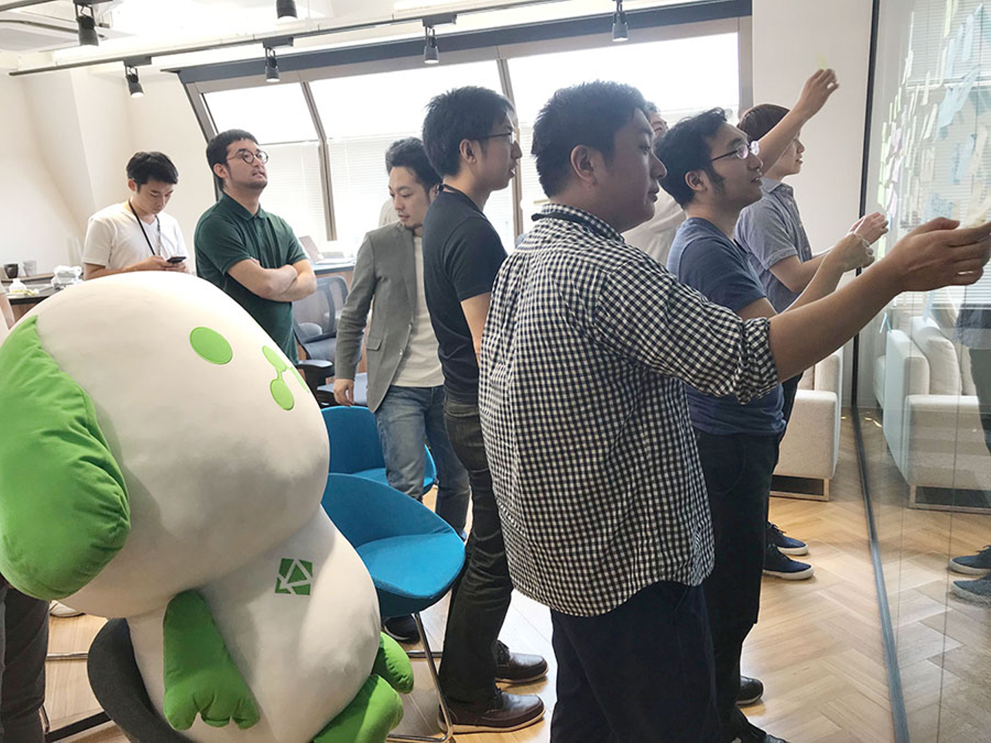 一見すると、よい感じに思えるのですが、そういうときこそサービスを飛躍させるチャンスなのではないかと。カスタマーサポート部門の方々に、「もっと便利に」「もっと“ストレスフリー”な環境」を提供するため、カラクリができることを考えよう!ということで、ブレスト大会が開催されました。