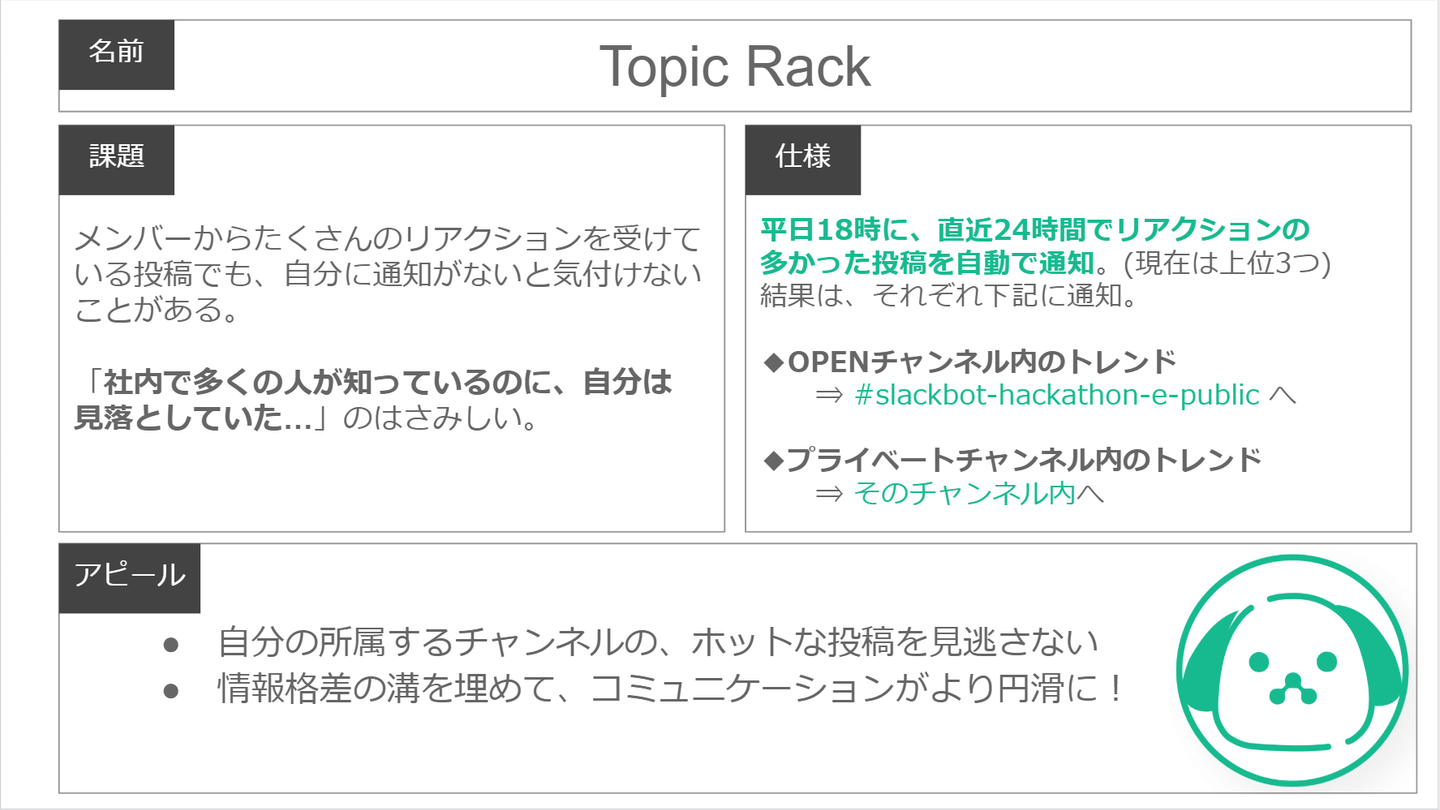 TeamE:大事なメンションを見逃すな!「Topic Rack / CSV Converter / メンションまとまる君」
