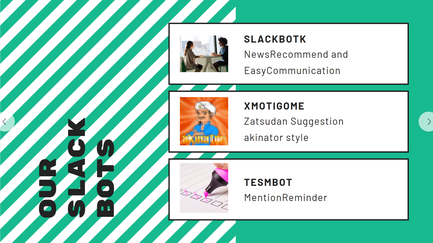 TeamB:総なめ狙い!コミュニケーション活性化させる3アイテム「SLACKBOTK / XMOTIGOME / TESMBOT」