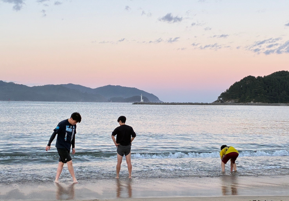 「ランニングシューズやジャージを車に積んで、仕事終わりにここでランニングやビーチバレーをしています。海水浴客でにぎわう夏の海開き期間はもちろん、秋は吉里吉里駅から金木犀の香りが漂い、冬は満天の星、春はいくらくしゃみをしても迷惑にならない.......1年を通して地元民に愛されるビーチです。」(下川蓮/はま留学生活支援員)