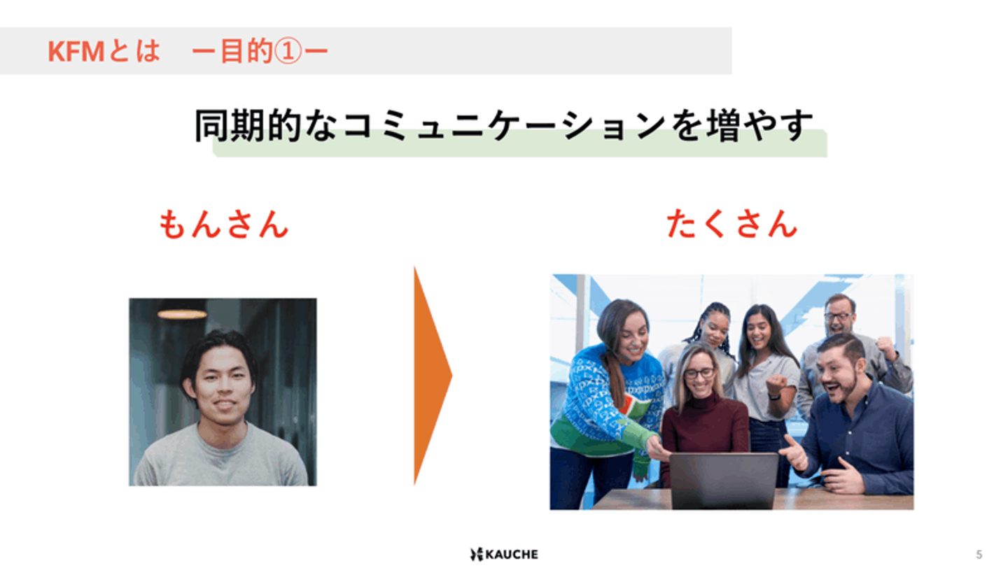 カウシェでは月イチの全社MTGを「KAUCHE Family Meeting(通称KFM)」と呼んでいます