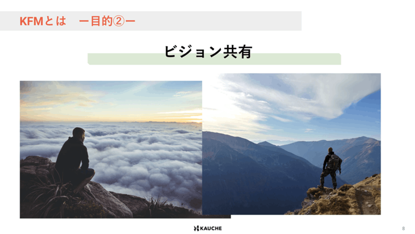 そこで、KAUCHEは今どこにいて、どこを目指していて、何を実現するために、今後どの山をどう登っていくのかという話をmonさんの口から改めて説明し、一体感・団結感・ワクワク感を持つ場を作りたいと考えています。