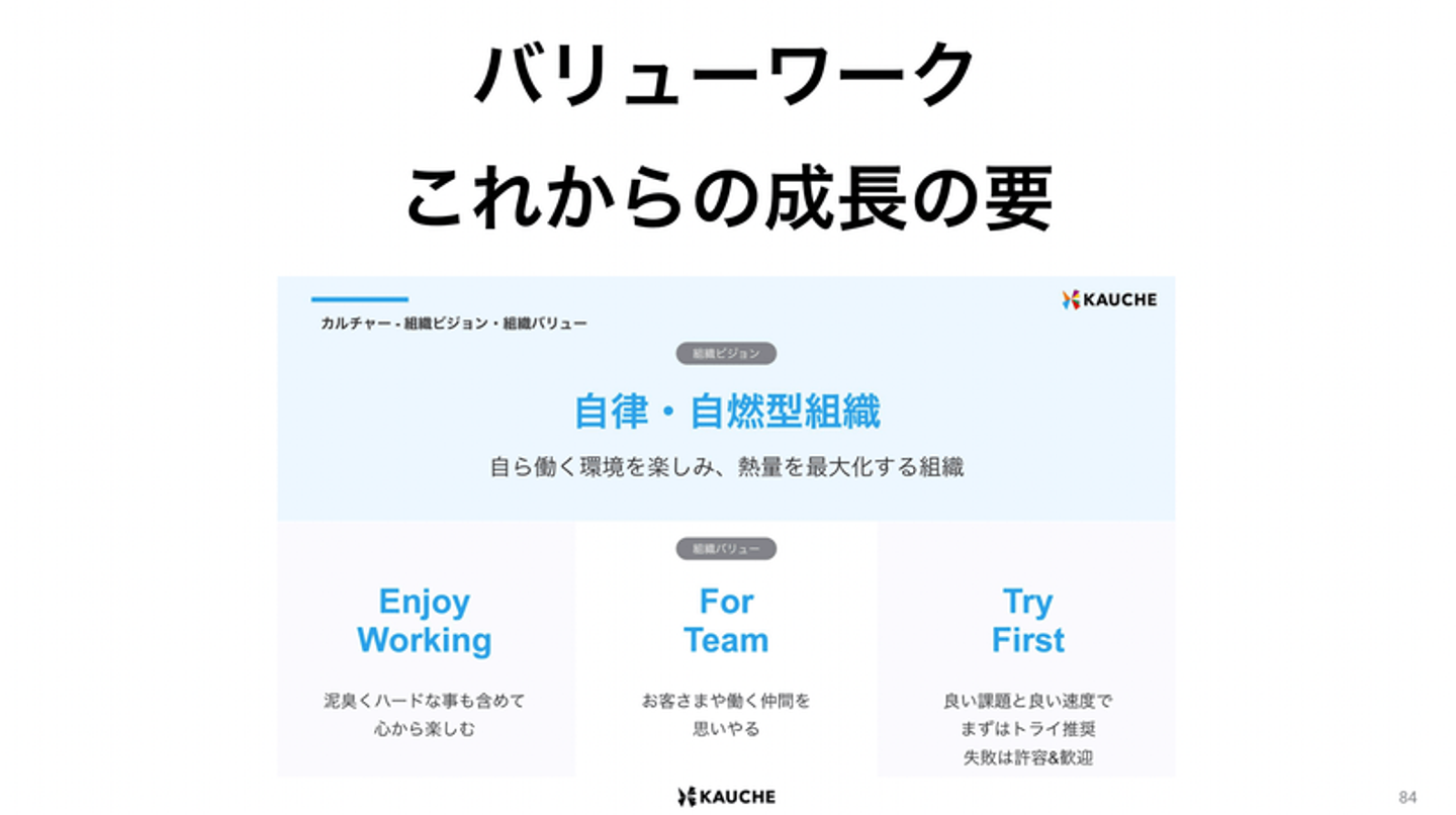 これから起こりうる課題にみんなで向き合い、みんなでカウシェのバリューとリンクしていく作業を、ひとつづつ丁寧に行なっていきたいなと思いました。