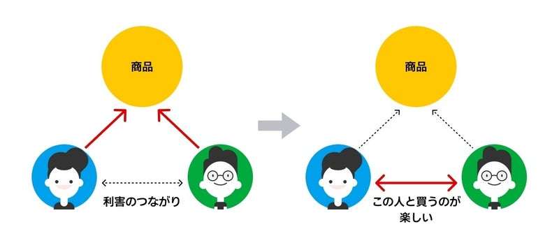 このように、初めは「商品をお得に買える」という利害関係で繋がったお客様が、徐々に関係値を深めていくことで、「その人と一緒に買うことが楽しい」状態を作ることから始めていきたいと考えています。