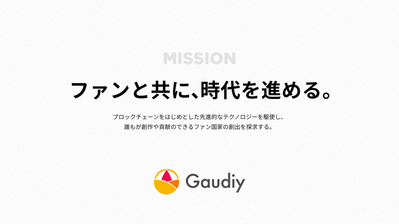 根本としてGaudiyには「人は誰しもイノベイティブである」という哲学と、「ファンと共に、時代を進める」というミッションがあります。