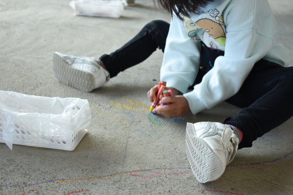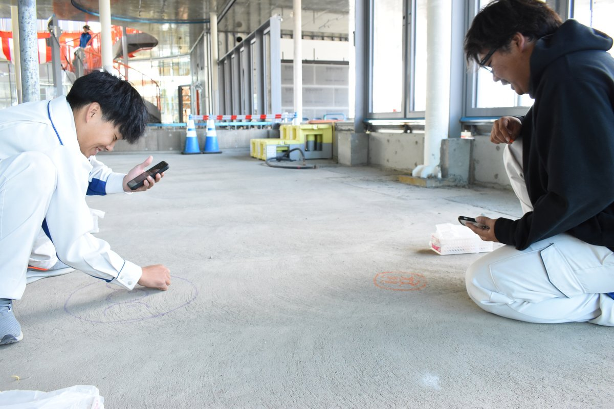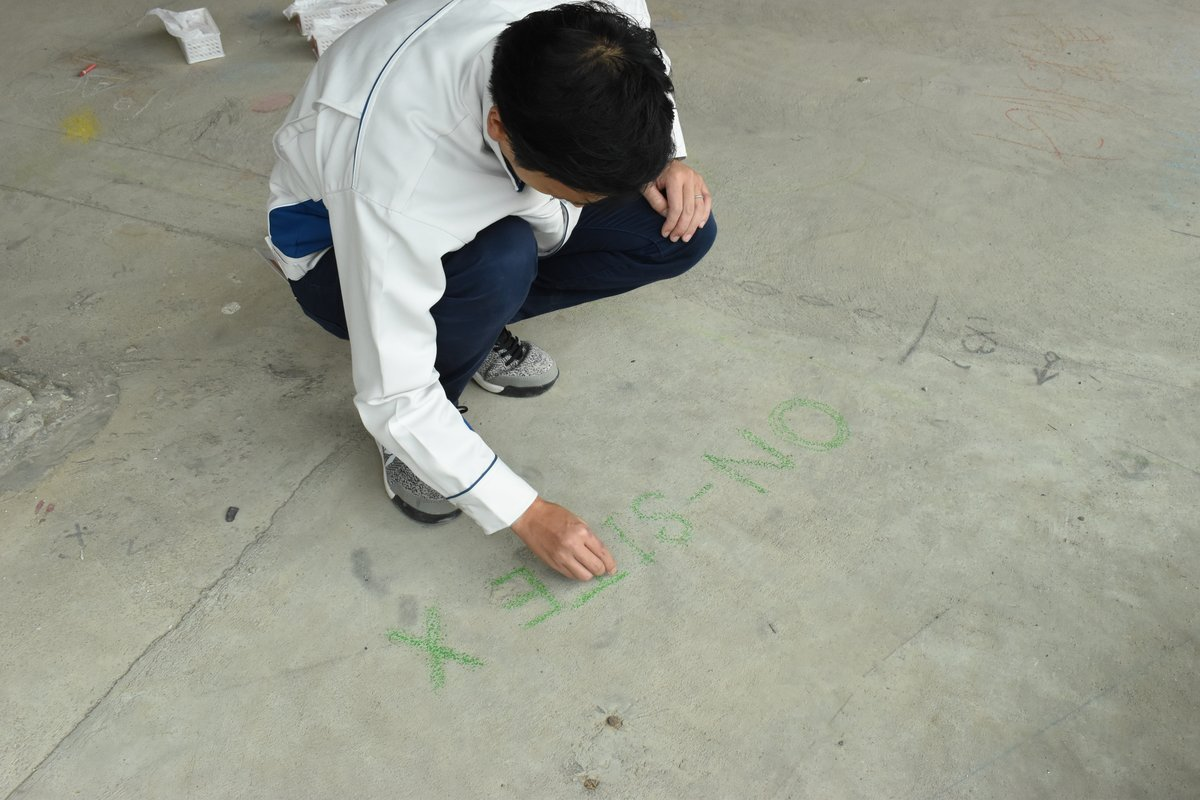 仕上げ時には隠れてしまうコンクリート上に、この日は自由にお絵描き可能!