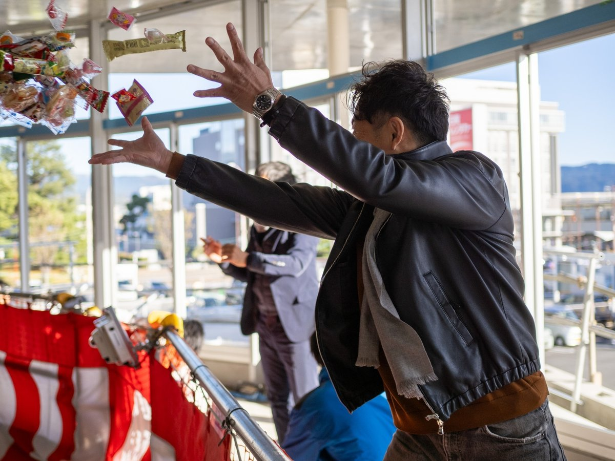 参加者の皆さんからも歓声が上がりながら、楽しくお餅やお菓子を拾っていただきましたよ!