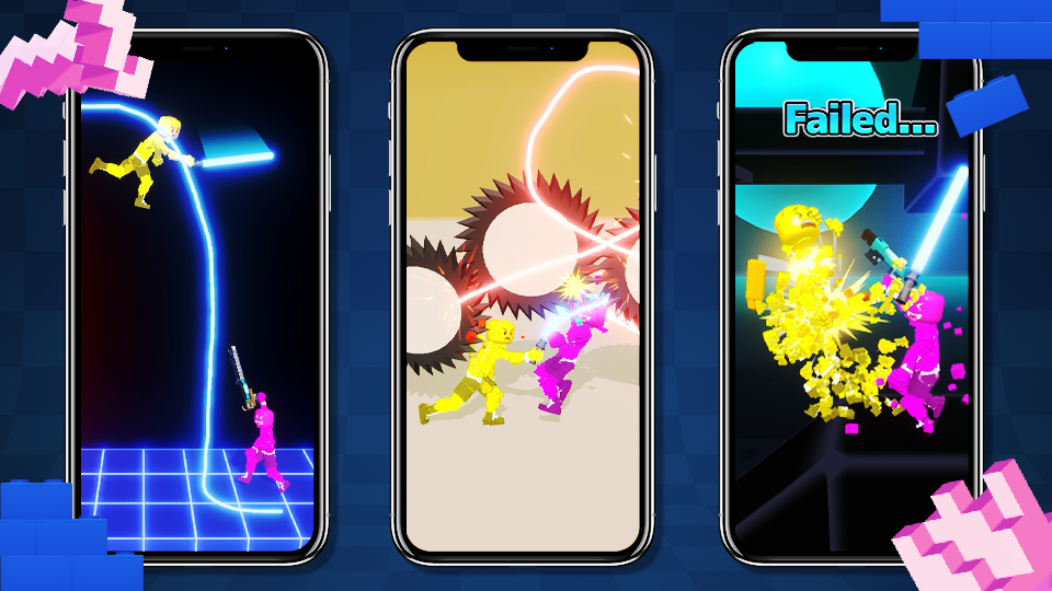 システムを作っていく中で他のゲームも作ったりしていたのですが、CPIテストを通過するものも、できなかったものもある中で、どれも「めっちゃ売れた」みたいな感じにはならなくて。ひたすら手を動かし続けていた時に、カヤックの出している「Draw Action」と「Draw Saber」という2つのゲームから着想を得て、今のシステムに落ち着きました。2つのゲームを生かしながら、自分が作ったシステムを組み合わせられるんじゃないかな?って思ったんです。
