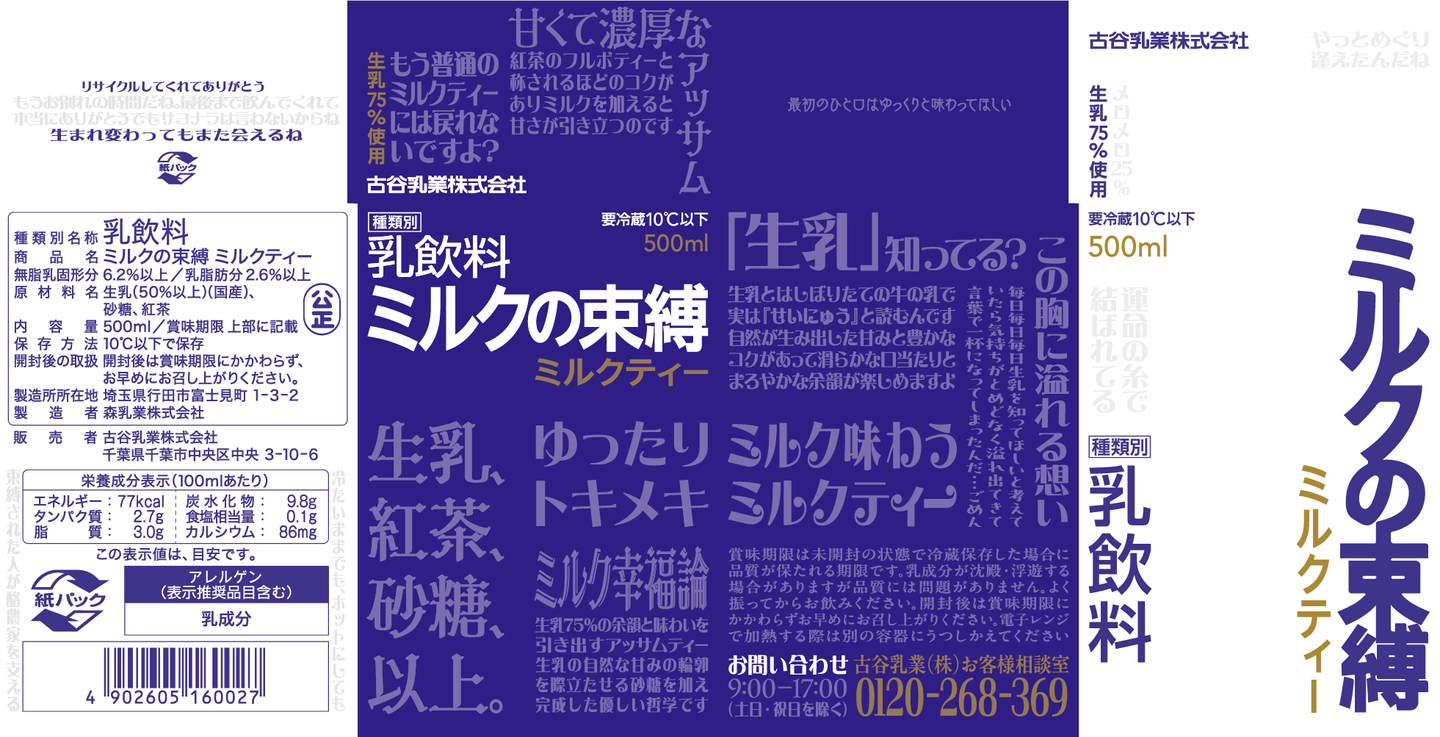 古谷乳業は、「日々搾られる生乳を、無駄にせず、美味しく届ける」という想いをもって商品づくりに取り組んでおり、『ミルクの束縛』は美味しさの追求と社会的な意義の両立を目指し、酪農家と消費者をつなぐ架け橋として誕生しました。挑戦的なネーミングやパッケージデザインの奥には「国産生乳の美味しさをまっすぐに伝えたい」という、誠実な願いが込められています。