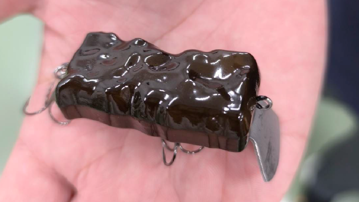 ブラックサンダーのリアルな形状を生かしつつ、ルアーとして釣れるように細かい微調整を行いました。チョコバー部分のディテールを潰さないようにしながら、リップの角度を複数パターン作成し、内部のウェイトバランスも何度も調整しました。見た目のリアルさを損なわず、安定したアクションで魚が反応するルアーとして成立させるための工程でした。
