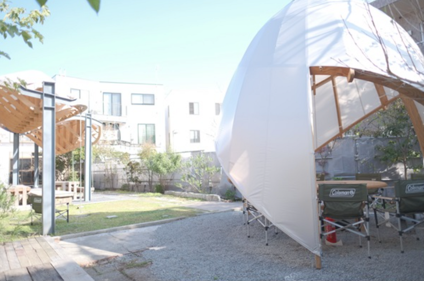 藤澤さんお気に入りのガーデンオフィス。広々した屋外で、気分転換しながら仕事ができるとカヤック社員からの人気も高い