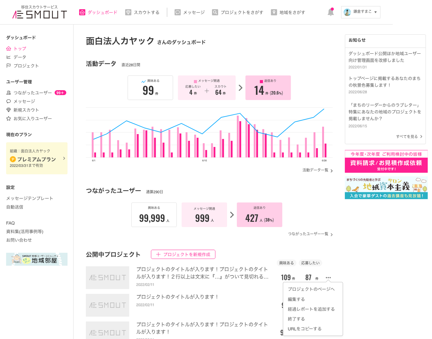 新機能によって、データをビジュアライズし、プロジェクトの成果をざっと見渡せるようになりました。プロジェクトへのリアクションから、応募、スカウトへの反応など、関わりの進行状況も数字で確認できます。