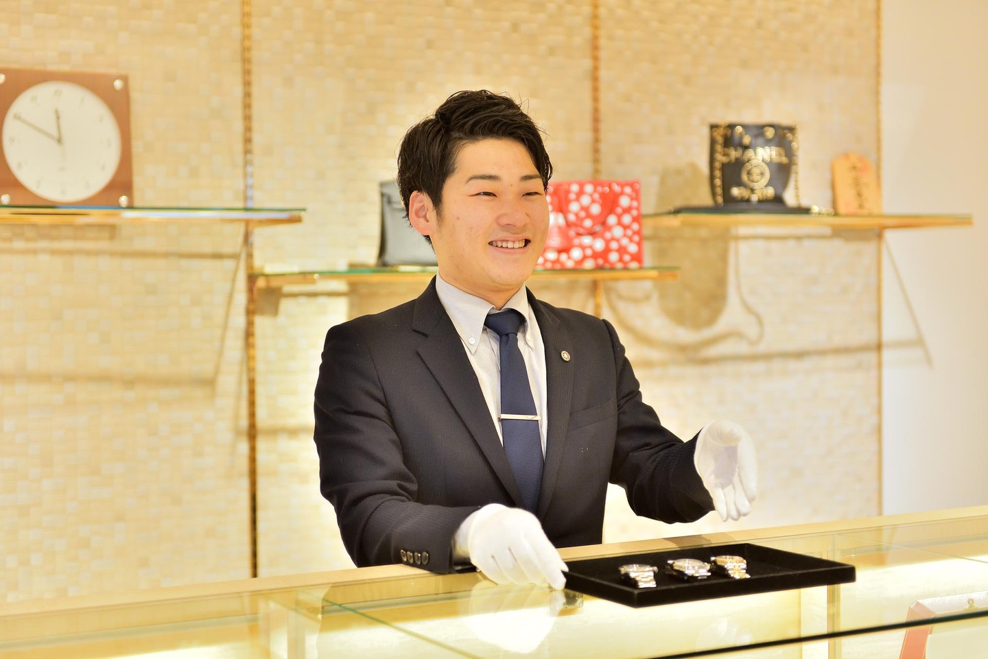 入社後は接客や販売からスタートし、少しずつ査定や相場を学んでいきます。