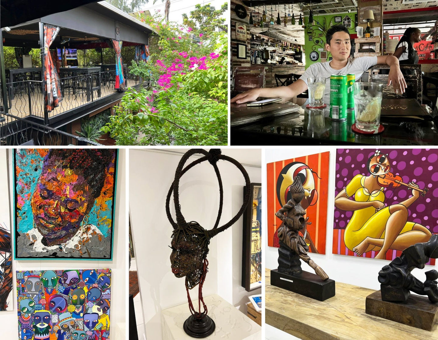 ▲ラゴス市内のアートカフェ(右上の写真は、KAVパートナーの山脇氏)