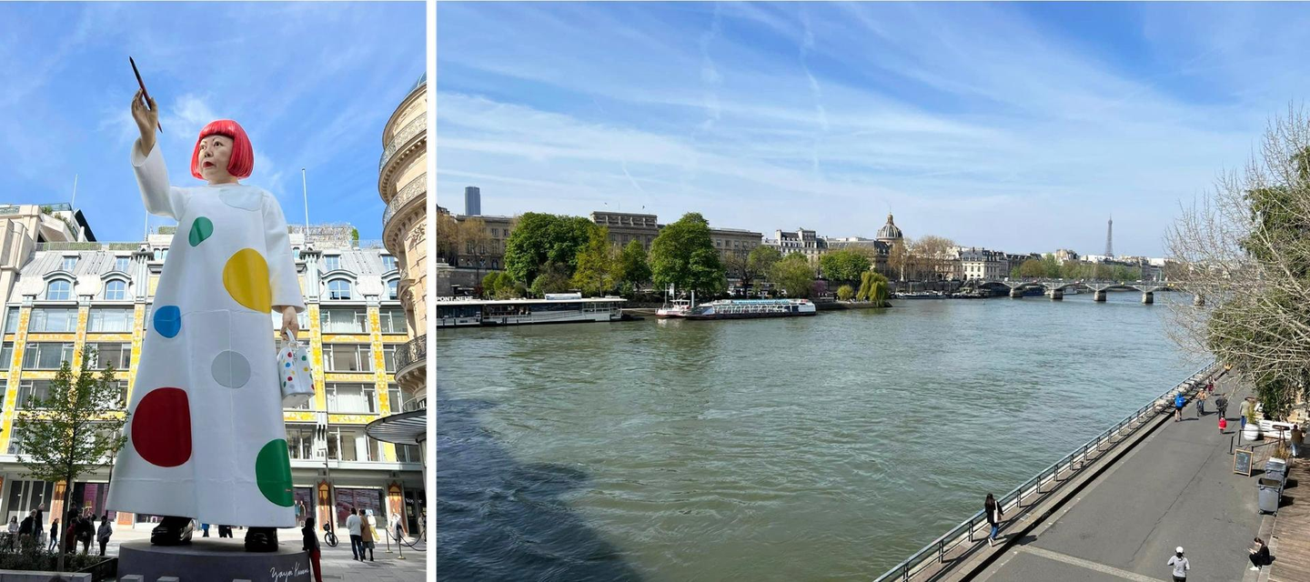 ▲(左)トランジット中のパリで草間彌生さん!(右)穏やかなセーヌ川