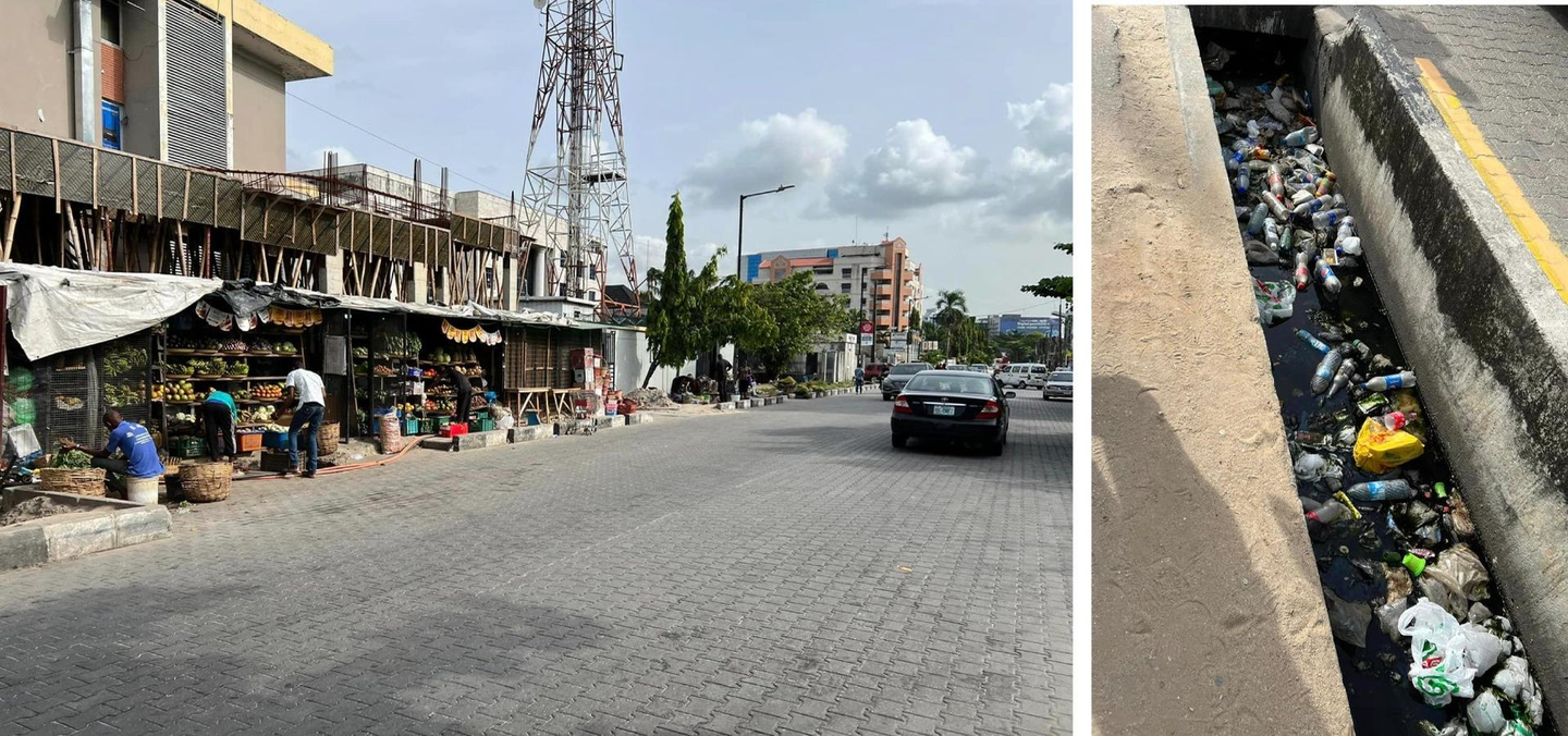 ▲(左)ラゴスの街並み (右)脇に流れるドブ川