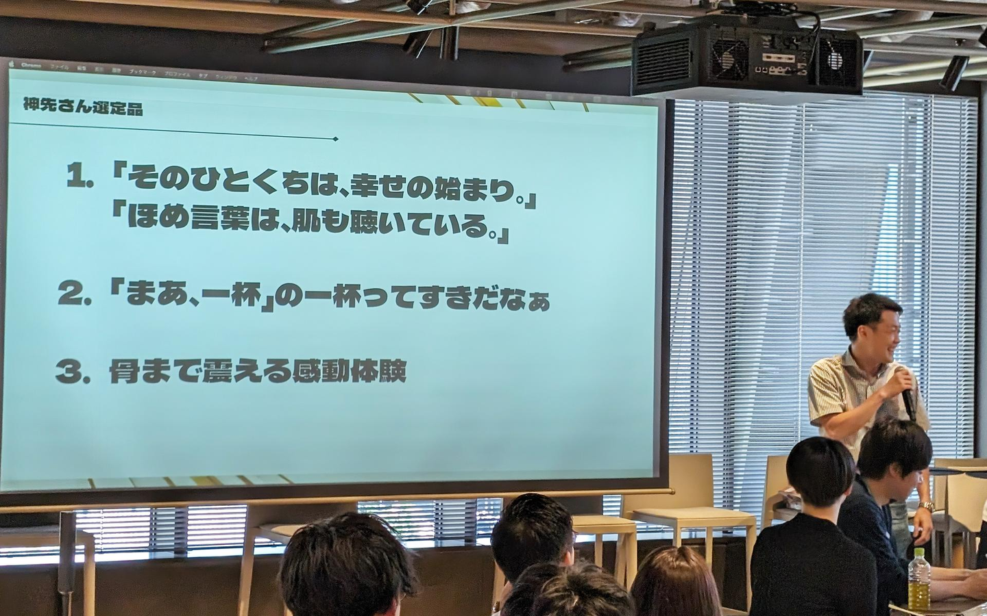 実は今回MDPが企画したのは、表彰だけではありません。リモートワーク中心のメンバーが多いケップルでは、全社員が集まるのは基本的に全社月例のタイミングのみ。そこで代表の神先さんが足元の状況や方針について話すのですが、ある日MDPメンバーから意見として挙がったのが「せっかくメンバーが集まる機会なので、神先さんとの距離を縮めていこう」というもの。