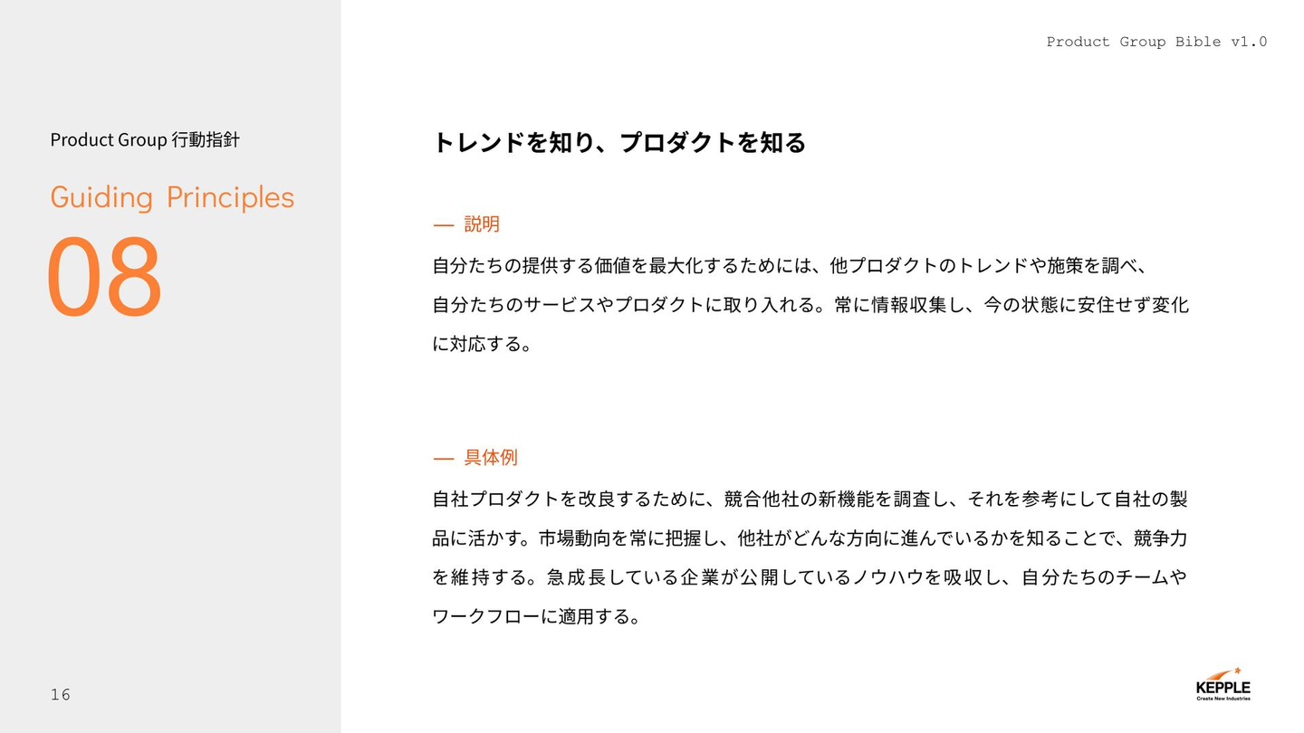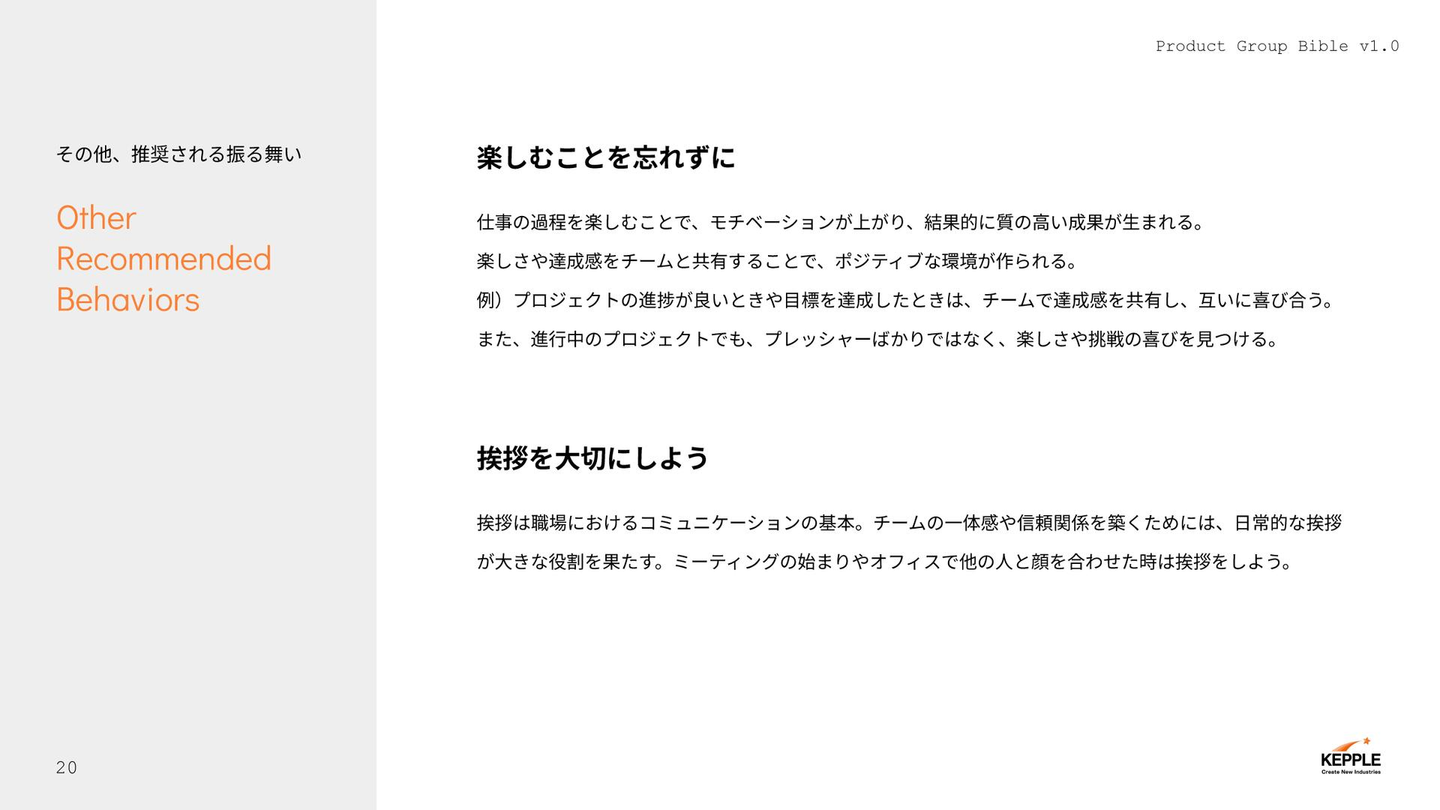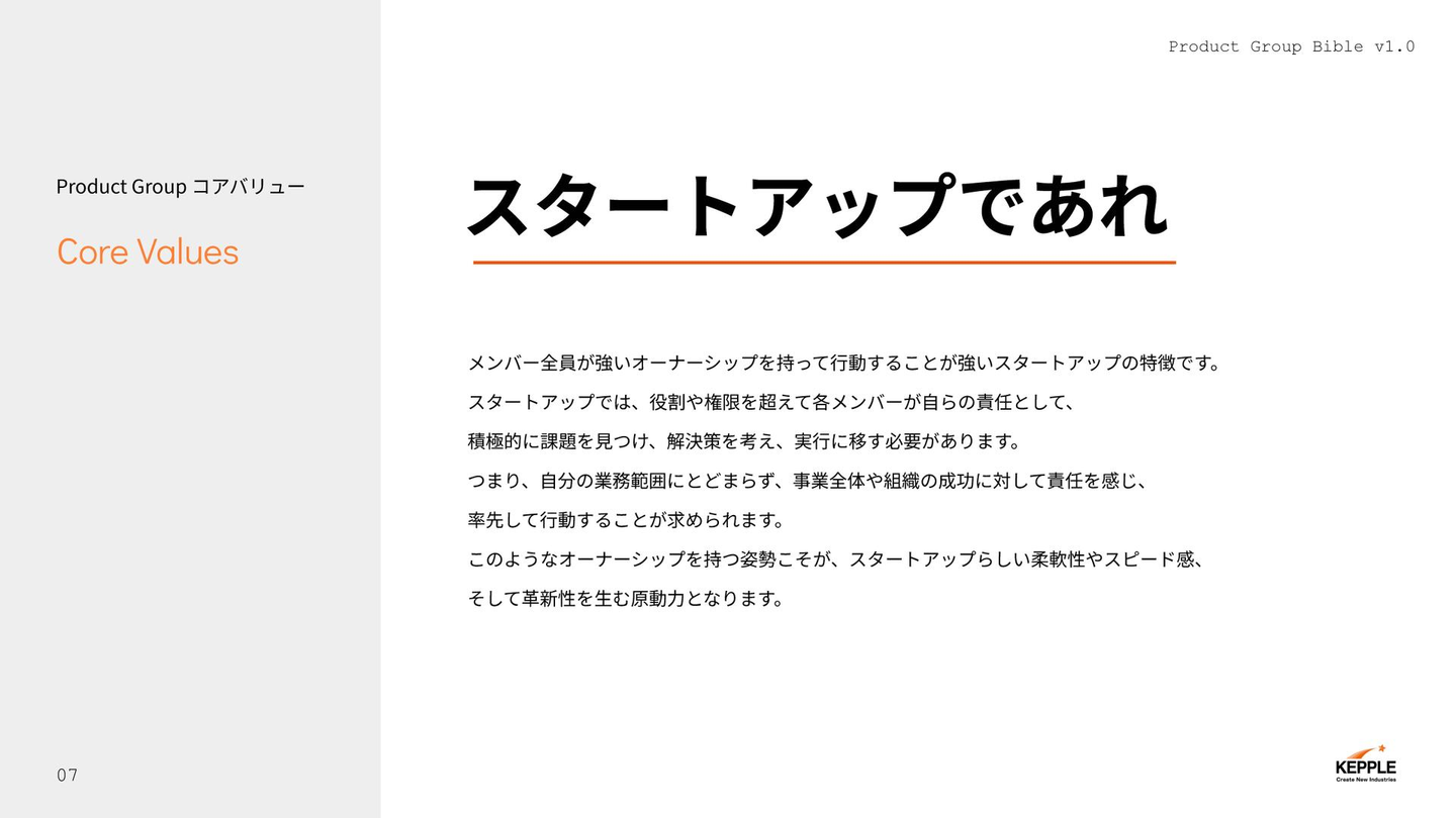 KEPPLE CREATORS LAB が所属する Product Group では、メンバーの価値観や行動の足並みを揃えるために、Product Group Bibleを作成しました。