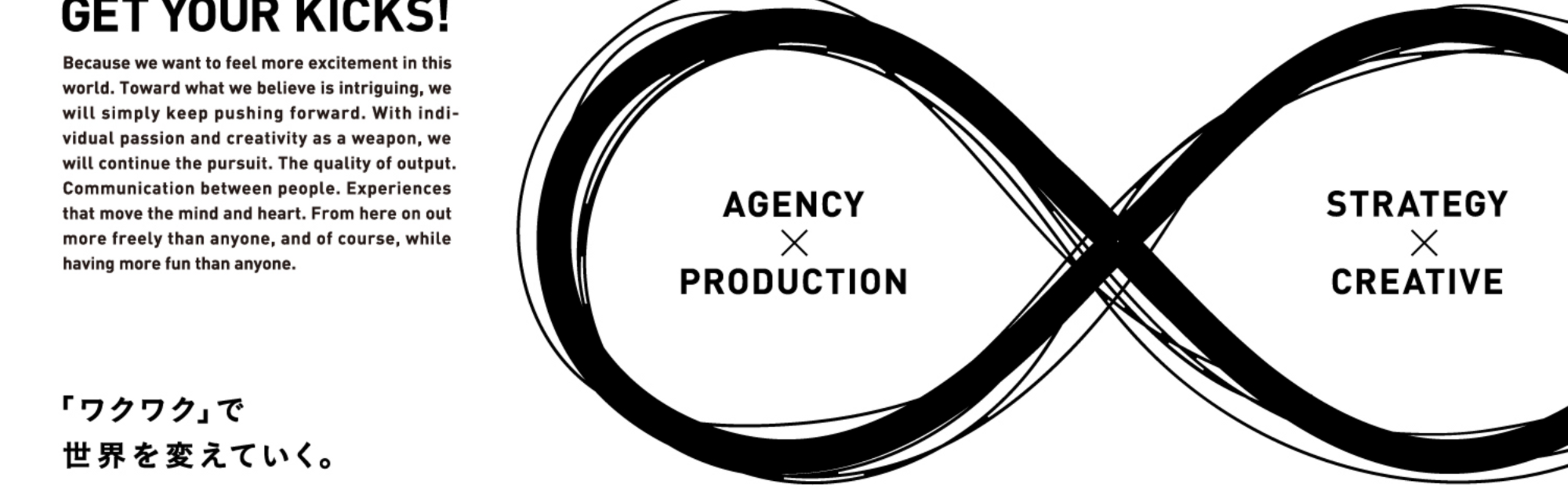 創業8年目。これまでのメディアバイイングを主とした広告代理店のモデルとは異なり、コミュニケーションの課題解決を本質とする、新たなクリエイティブエージェンシーです。一般的な広告代理店のクリエイティブ&プランニング機能に加えプロダクション(制作)機能を有し、デザインのみならず、CM・キャスティングを含む各種動画の撮影、編集までインハウスで提供します。ナショナルクライアントを中心に直接のパートナーシップを結び、ブランド戦略から各プロモーション、クリエイティブアウトプットまで、トータルでプロデュースしています。