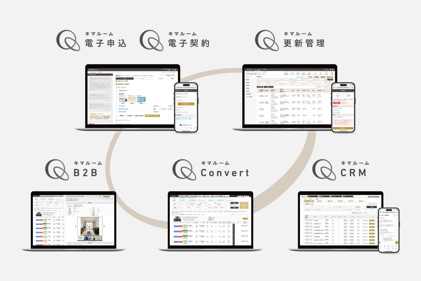「キマルーム PM」は「キマルーム 更新管理」へ、「キマルーム Sign」は「キマルーム 電子申込」「キマルーム 電子契約」へ。