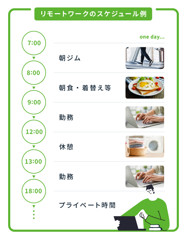 通勤時間がない分、時間を有効的に使えていますね。自宅でご飯が食べられるのも経済的で、休憩時間に家事ができるのもリモートワークの魅力です。