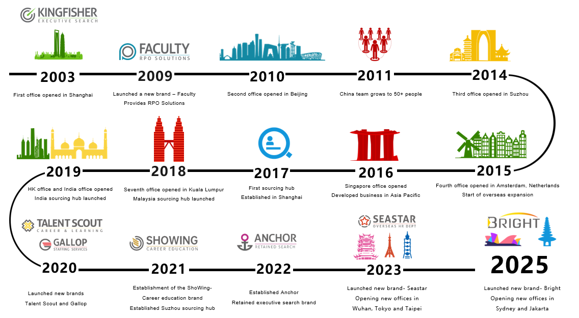 私たちKingfisher HR Solutionsは、2003年上海にて設立、そして現在は11カ国にて展開をする人材ソリューション企業です。