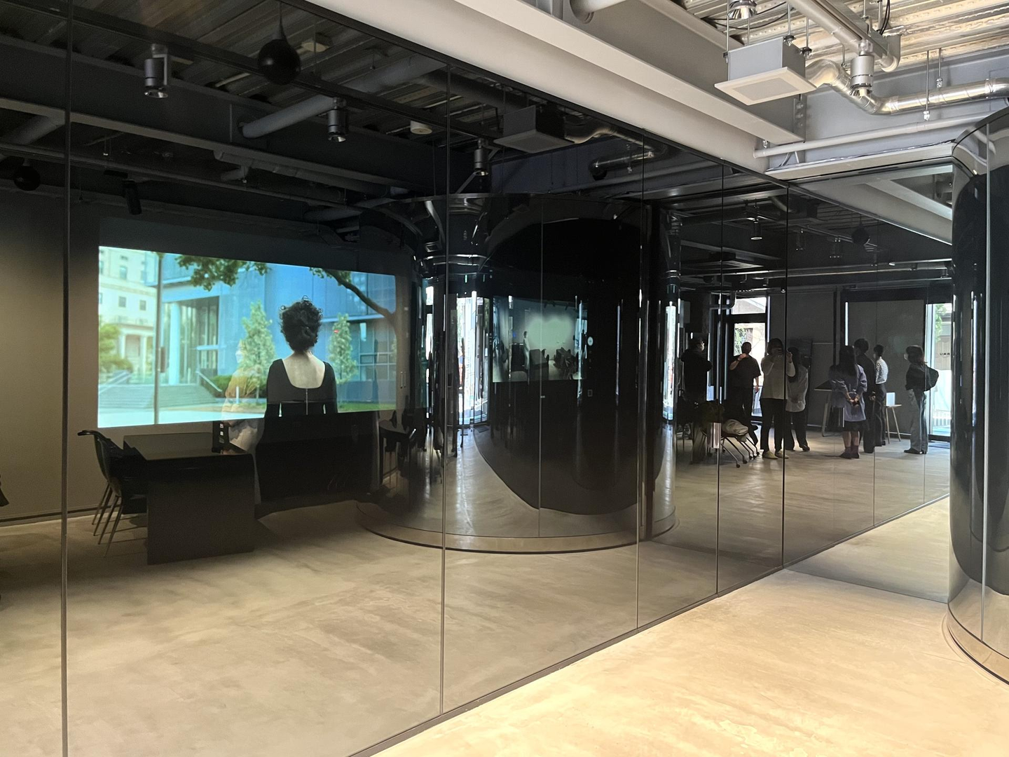 ミラーを専門に扱う会社のVERNUさんと、デジタルサイネージなどを手がける会社のクラウドポイントさんに最先端のデジタルサイネージについて実際に見せていただきながら、詳しく教えていただきました。