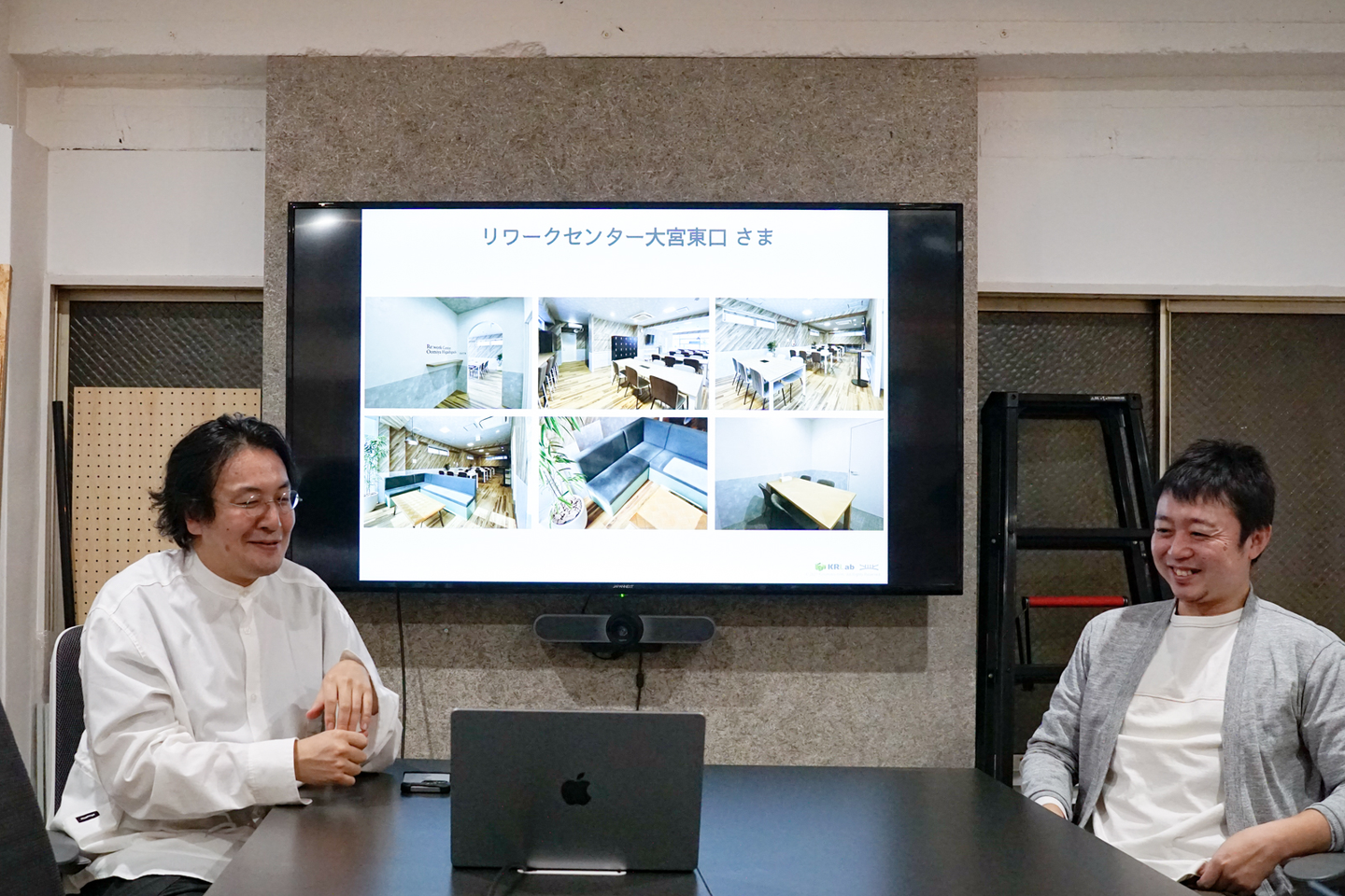 KRLabさまと木下商会で一緒につくりあげた事例写真を見ながら、実務について説明しつつ、思い入れがあるポイントや大変だったポイントを振り返るお二人。