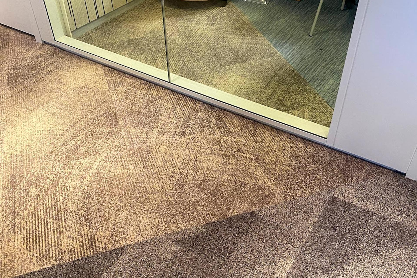 あえて壁の先もカーペットを繋げているそうです👀 働きやすくするための細かい工夫がたくさんありました。
