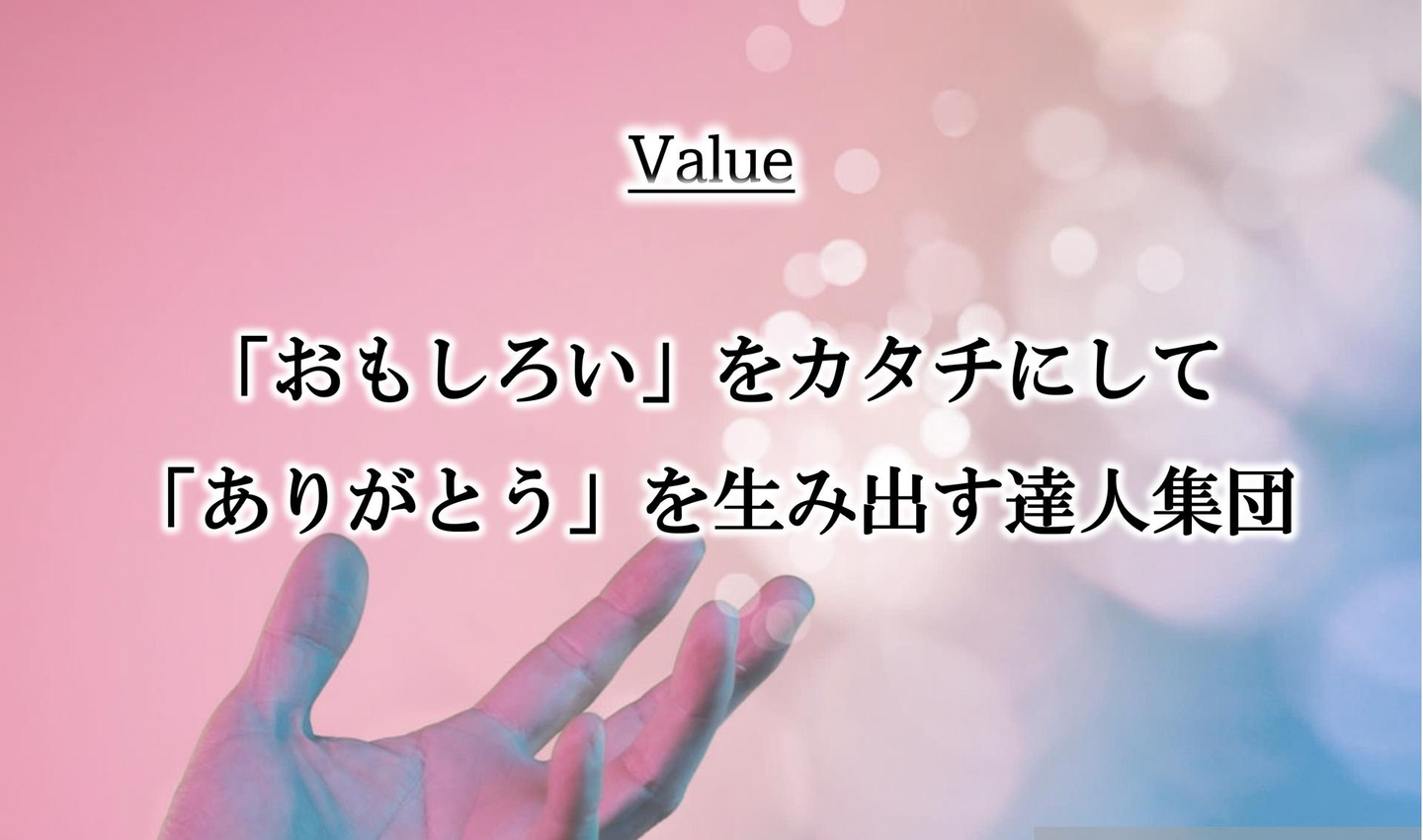 Value: 「おもしろい」をカタチにして「ありがとう」を生み出す達人集団