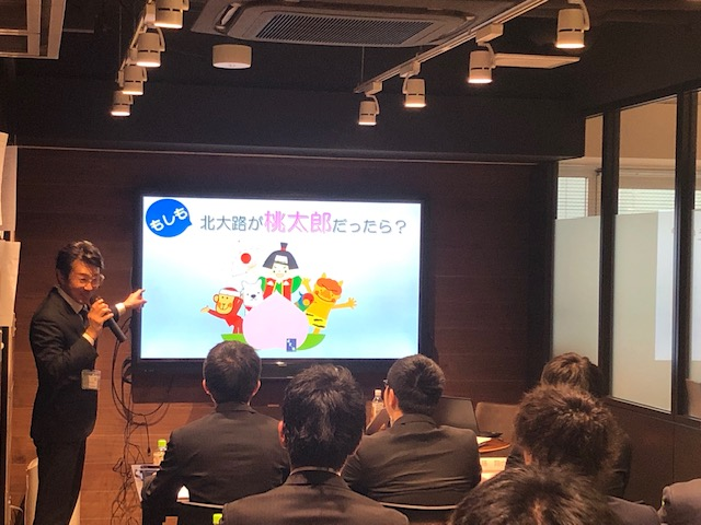 ももたろう?のビジョン(世界平和)、ミッション(鬼退治)、利益報酬(きびだんご)、チームワーク(犬も猿もお互いを認めて、強味を伸ばす環境)に例えて 石山店長から、会社ビジョンのわかり易い説明( ;∀;)