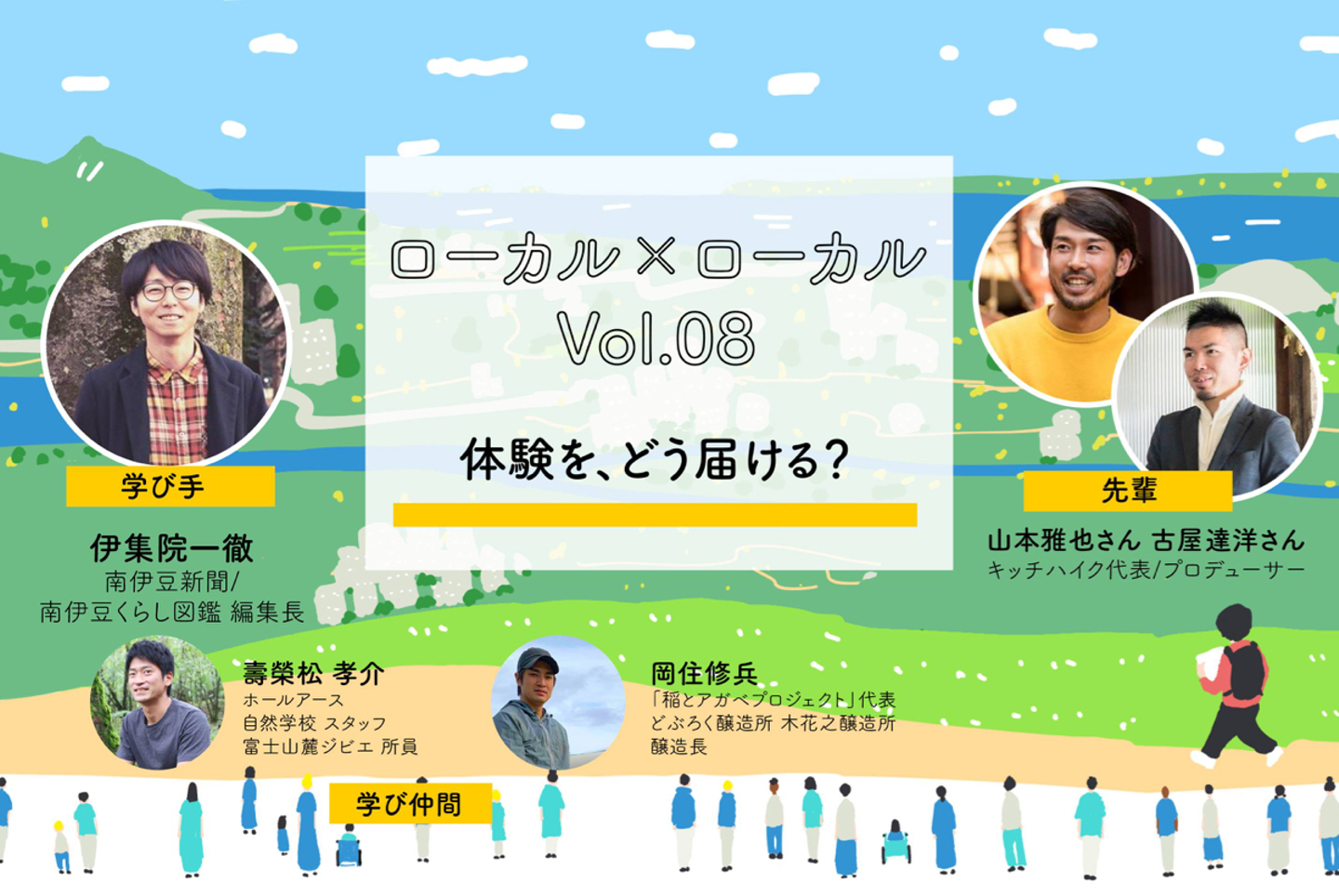 「ローカル×ローカル」とは、ローカルメディア「南伊豆新聞」「南伊豆くらし図鑑」の編集長・伊集院一徹さんがはじめた企画。「地域おこし」「地方創生」って一体どういう状態だろう?その問いを持った伊集院さんがさまざまなローカルで活躍する先輩たちを訪ねて、学んだことを報告するというイベントです。