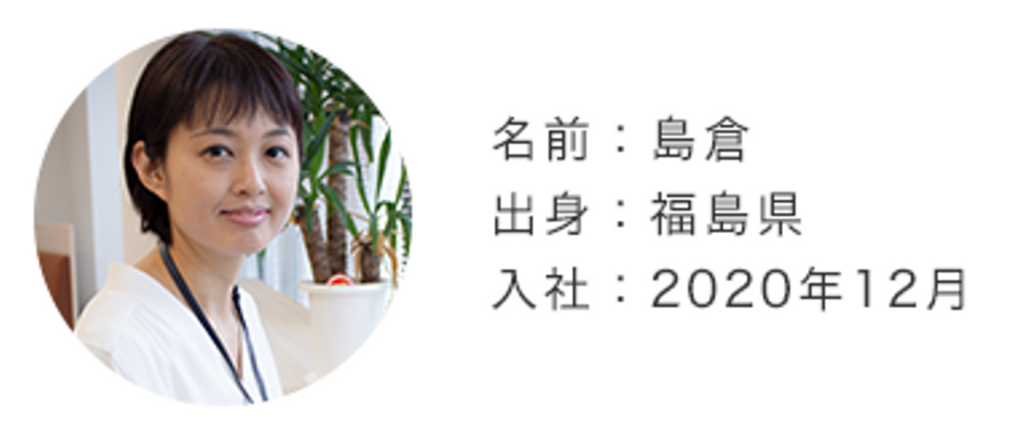 今回の社員インタビューは、コーポレート部に所属し、当社の総務・労務・人事といった管理業務にてとても幅広く活躍いただく島倉(しまくら)さんです!