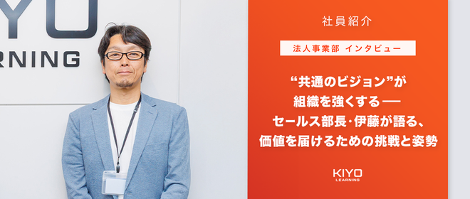 こんにちは!KIYOラーニング採用担当です。今回は、法人事業部マーケティング部長の樋口さんにインタビューを行いました。多様な職種・役割を経験しながら、マーケティングの本質を探求してきた樋口さん。これまでのキャリアやマネジメントへのこだわり、そしてKIYOラーニングでの業務のやりがいについて、お話を伺いました!【プロフィール】2024年4月入社。法人事業部マーケティング部長。栃木県出身。趣味・好きなこと 自転車に乗って遠出、読書(ジャンル問わず)、アクアリウム休日の過ごし方 休日は子どもと遊んだり、植物の手入れや家事をしたり、日常を大切に過ごしています。1日のルーティーン 朝は業界ニュース...