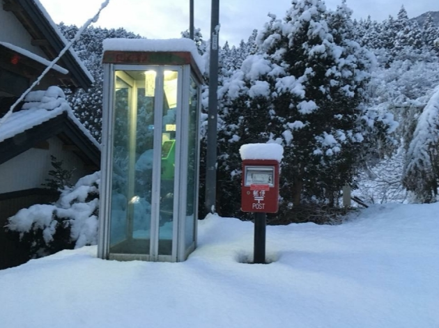 郵便ポストに併設された電話ボックス
