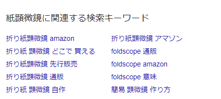 2.テーマ出し 「Foldscope 購入方法」「折り紙顕微鏡 どこで買える」